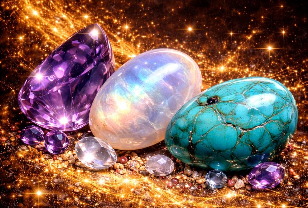 Heilsteine Kristralle Amethyst Türkis Mondstein